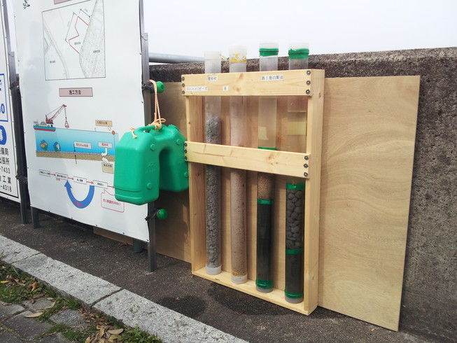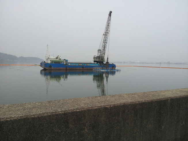 水質浄化を目的に、水深2M程度の海底に堆積したヘドロの上に、砂や石炭灰処理材を20㎝程度覆う事業である。