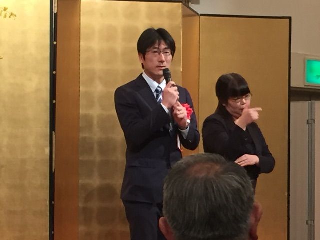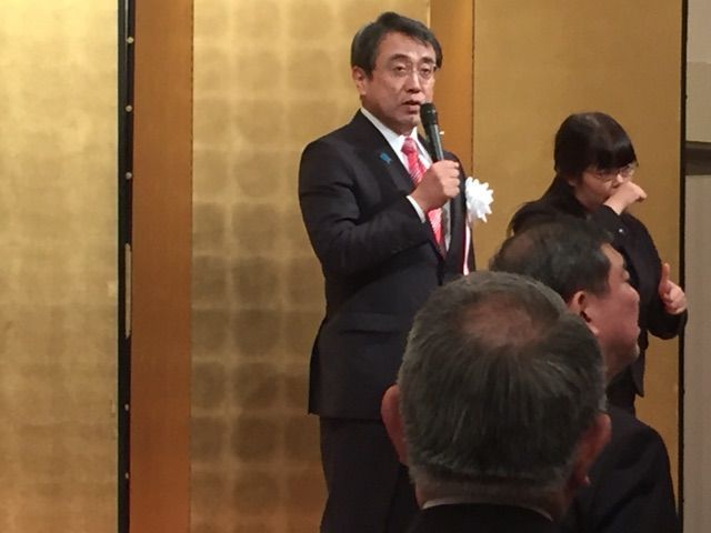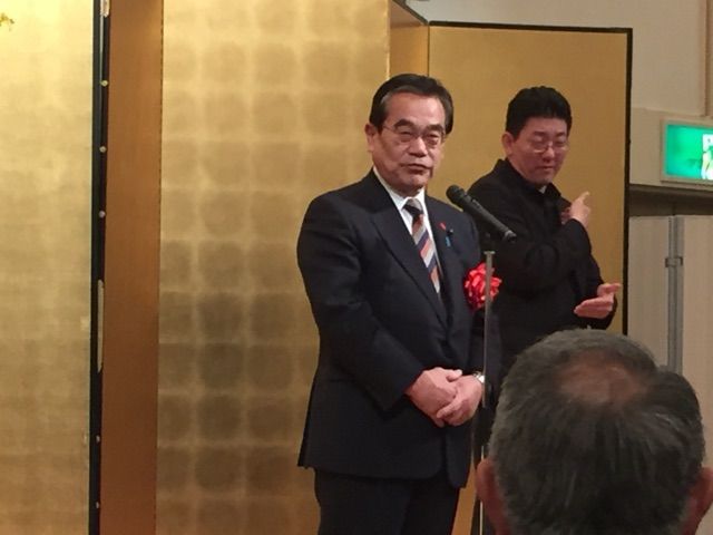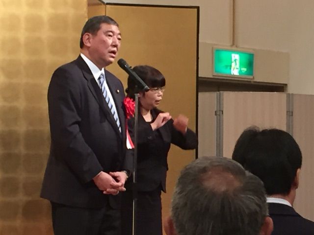 来賓挨拶の初めは石破大臣で、「優秀だけでは無くて、困った時や必要な時に必ず側にいてくれる人」と評価した。