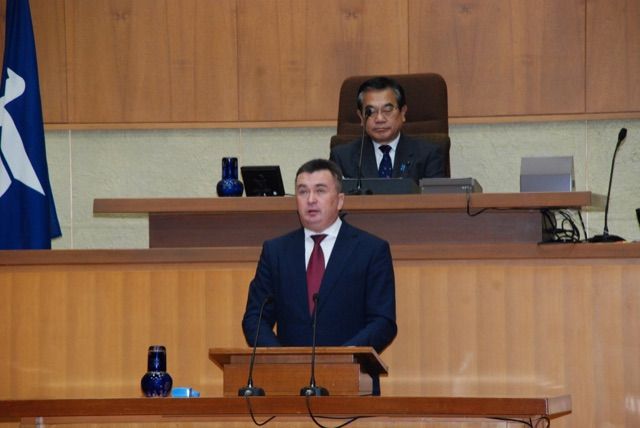 25日、11月定例会が開会し、39億8900万円の補正予算案等の議案が上程され、その後議場では、友好交流25周年を記念し来県された、ロシア連邦沿海地方のミクルシェフスキー・ウラジミール知事の演説が行われた。