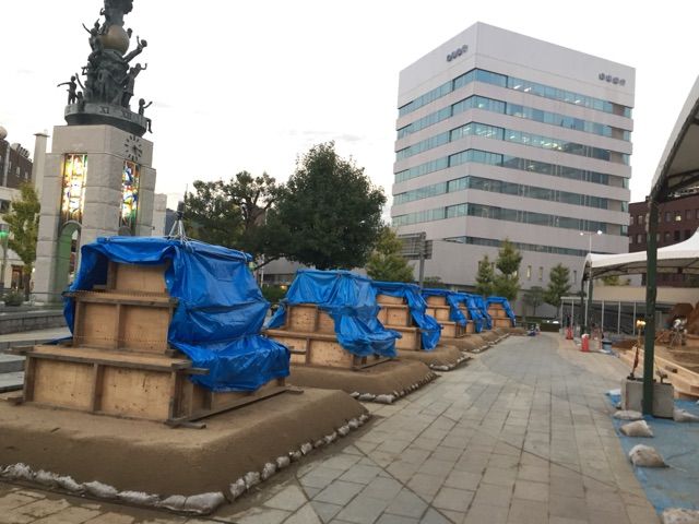現地調査が終了し、鳥取駅に来ると「砂の美術館」開館10周年記念イベント、「砂のルネッサンス」の準備が進んでいた。