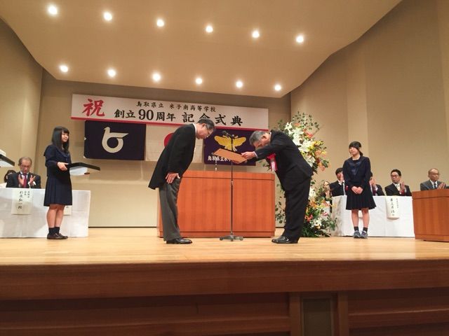23日、鳥取県立米子南高等学校の創立90周年記念式典に出席した。開式に先立ち13:00から吹奏楽部の記念演奏が披露された。
