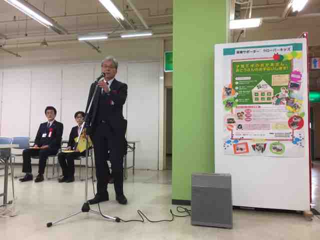 続いて、会場を提供している㈱ホープタウンの小西副社長が来賓挨拶を行い、クローバーキッズとの連携を紹介した。