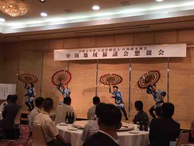 引き続き懇親会が開催され、しゃんしゃん傘踊りが披露された。