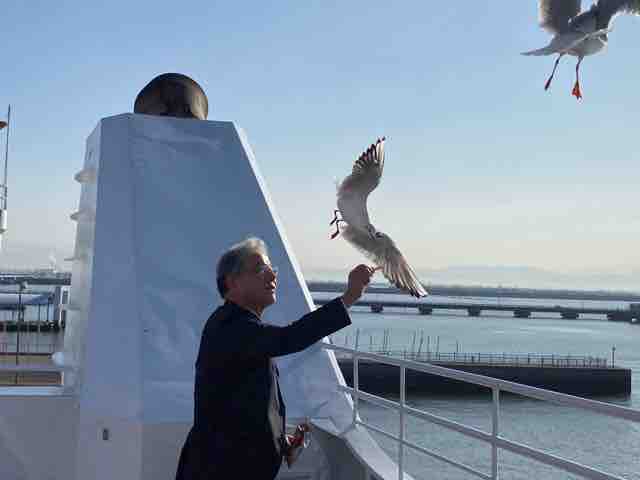 翌6日は穏やかな冬晴れとなり、熊本港から島原港へフェリーで移動して、次の調査先、島原半島ジオパーク協議会を目指した。