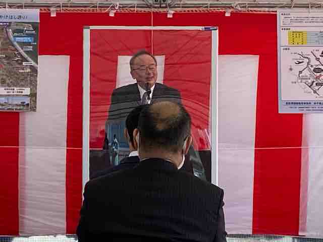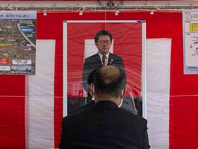 次に伊木市長は、「和崎かけはし通り」の通称名になぞらえ、「地域はもとより県や日本海側の発展のかけはしに」と祝辞を述べた。