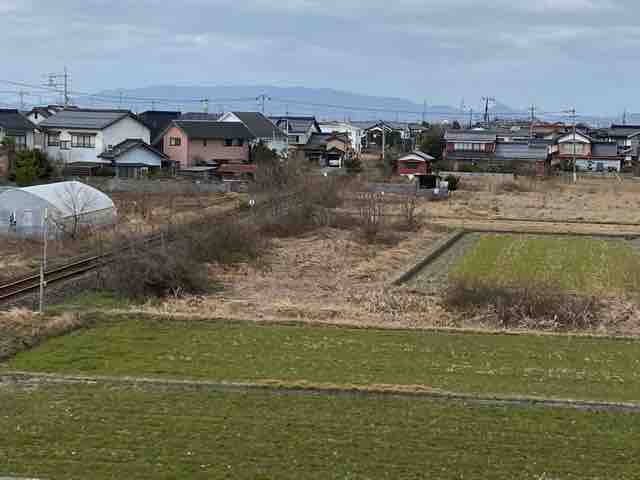 跨線橋から西側を眺めると、線路の右側が私の住んでいる集落で、日課の犬の散歩コースである。