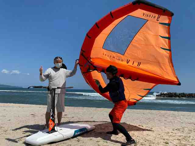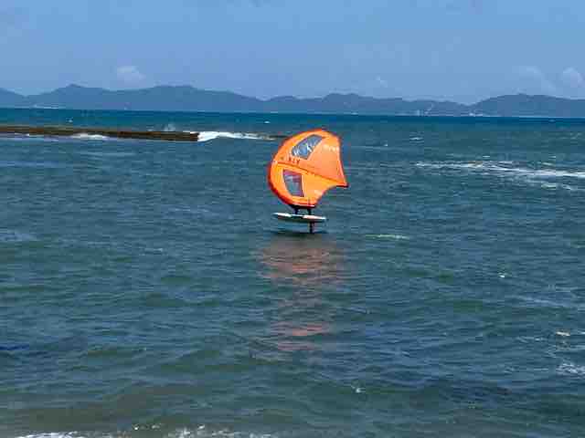 このようなコンディションに打ってつけなのが、今注目のウィングフォイルで、この夏、皆生ビーチでも話題となるだろう。