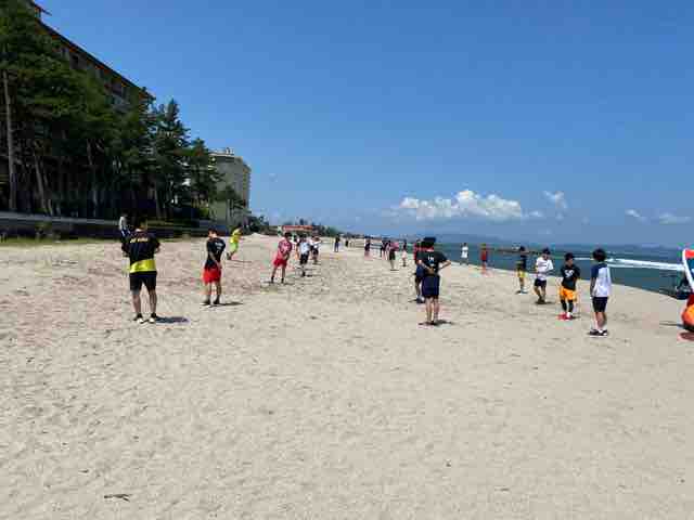 ビーチでは、高校のクラブがフィジカルトレーニングをしており、コロナ禍で最高の練習場だと感じた。