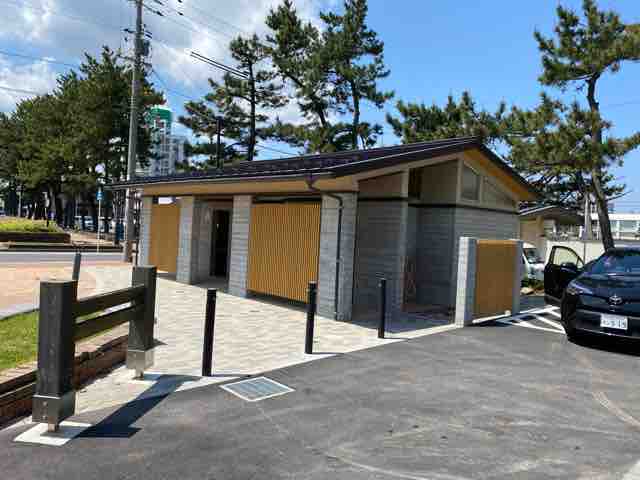 会場の海浜公園の公衆便所は新築され、今シーズンからは快適に用を足すことが出来る。