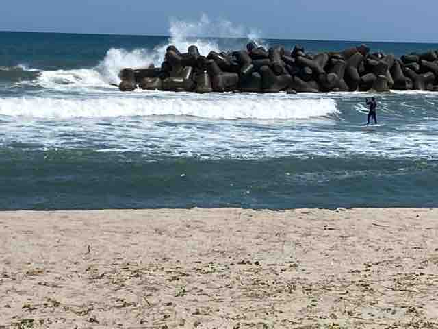 待ちに待った晴天だったが、前半の悪天候の影響が残り、波と風は残り初心者には難しコンディションとなった。