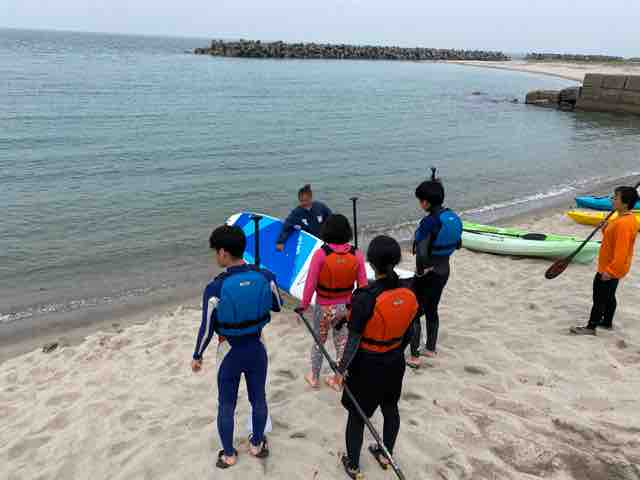 サップ体験の鳥大生グループ。