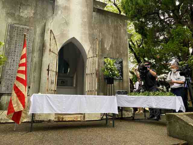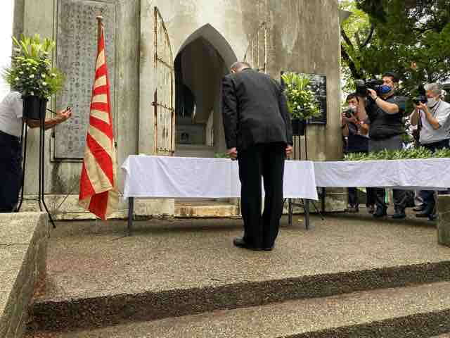 国旗掲揚と黙禱に続き、慰霊塔顕彰護持会・海軍クラブ美保錨会の菊池会長が追悼の言葉を述べ、参加者が献花を捧げ英霊に哀悼の誠を捧げた。