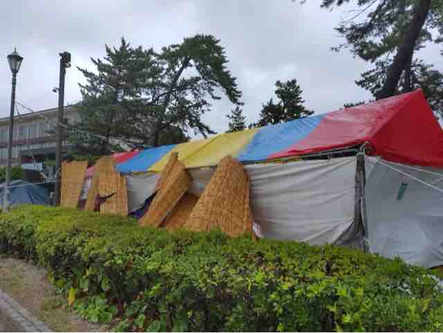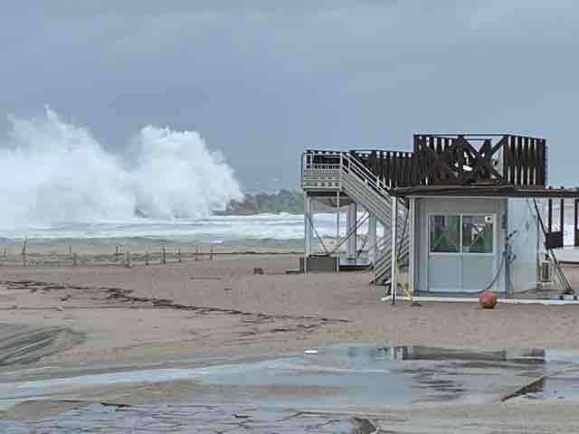 海浜公園ビーチのマリンアスレチックも大波を受け、撤収作業も追いつかず大破した。