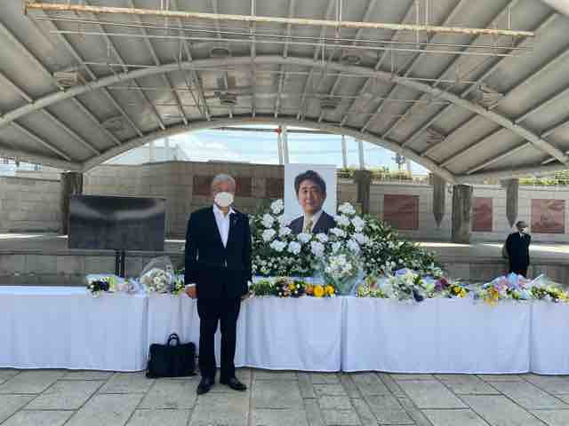 10月15日、安倍元総理の山口県民葬儀が海峡メッセ下関で挙行され、自民党鳥取県連を代表して参列した。会場の外には献花台が設置され、午後4時からの一般献花を待つだけとなっていた。